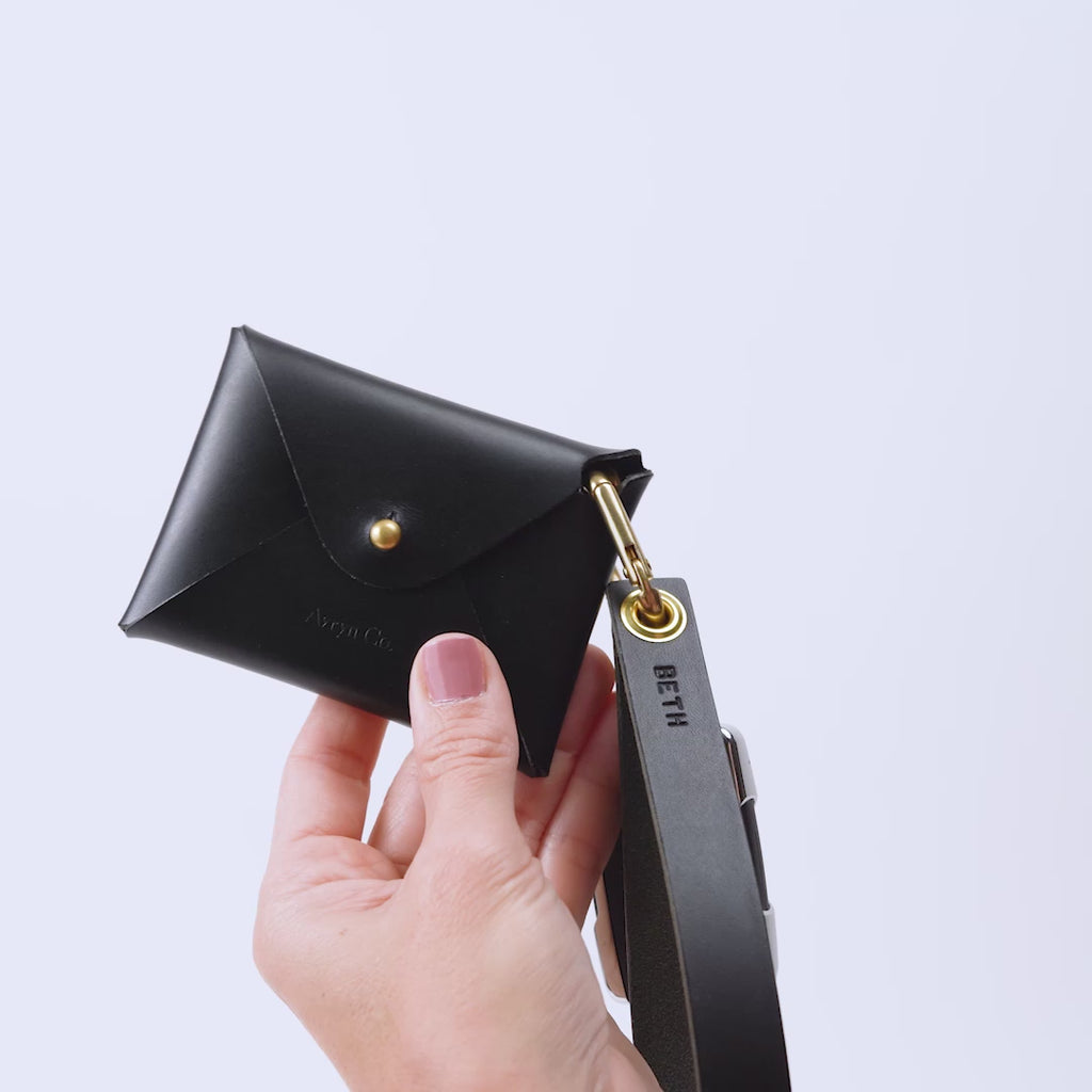 The wristlet is approximately 5.5" long when folded and approximately 0.7" wide.