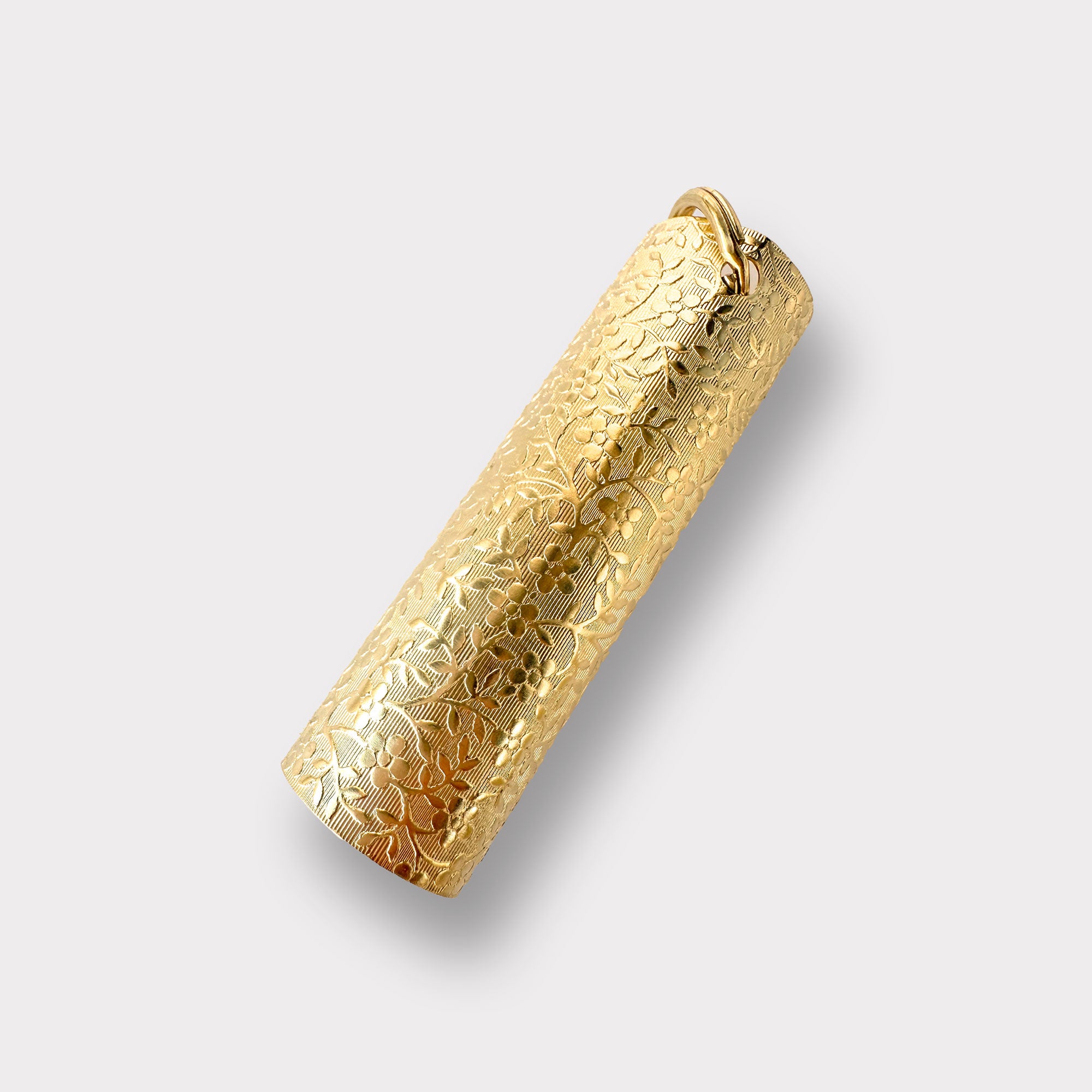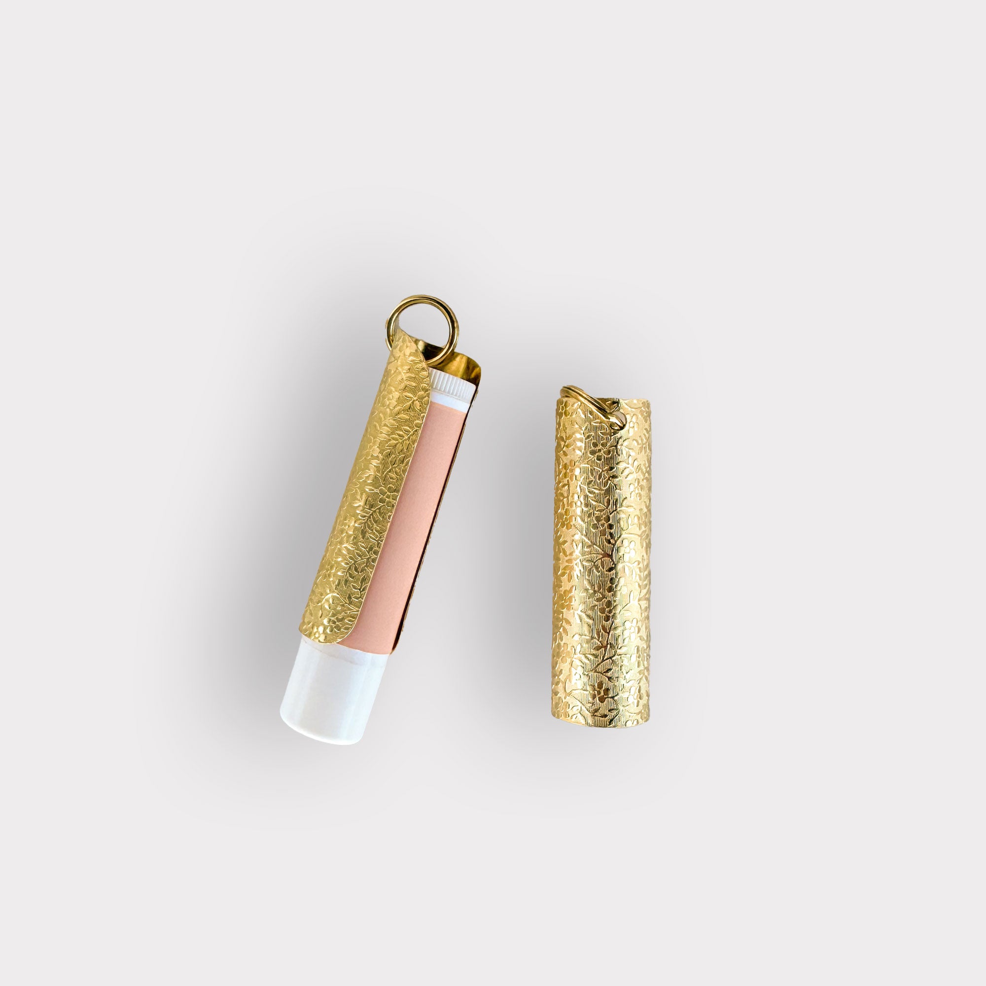 Carry your favorite lip balm with you wherever you go with this solid brass keyring lip balm holder, now available with an embossed flower pattern!