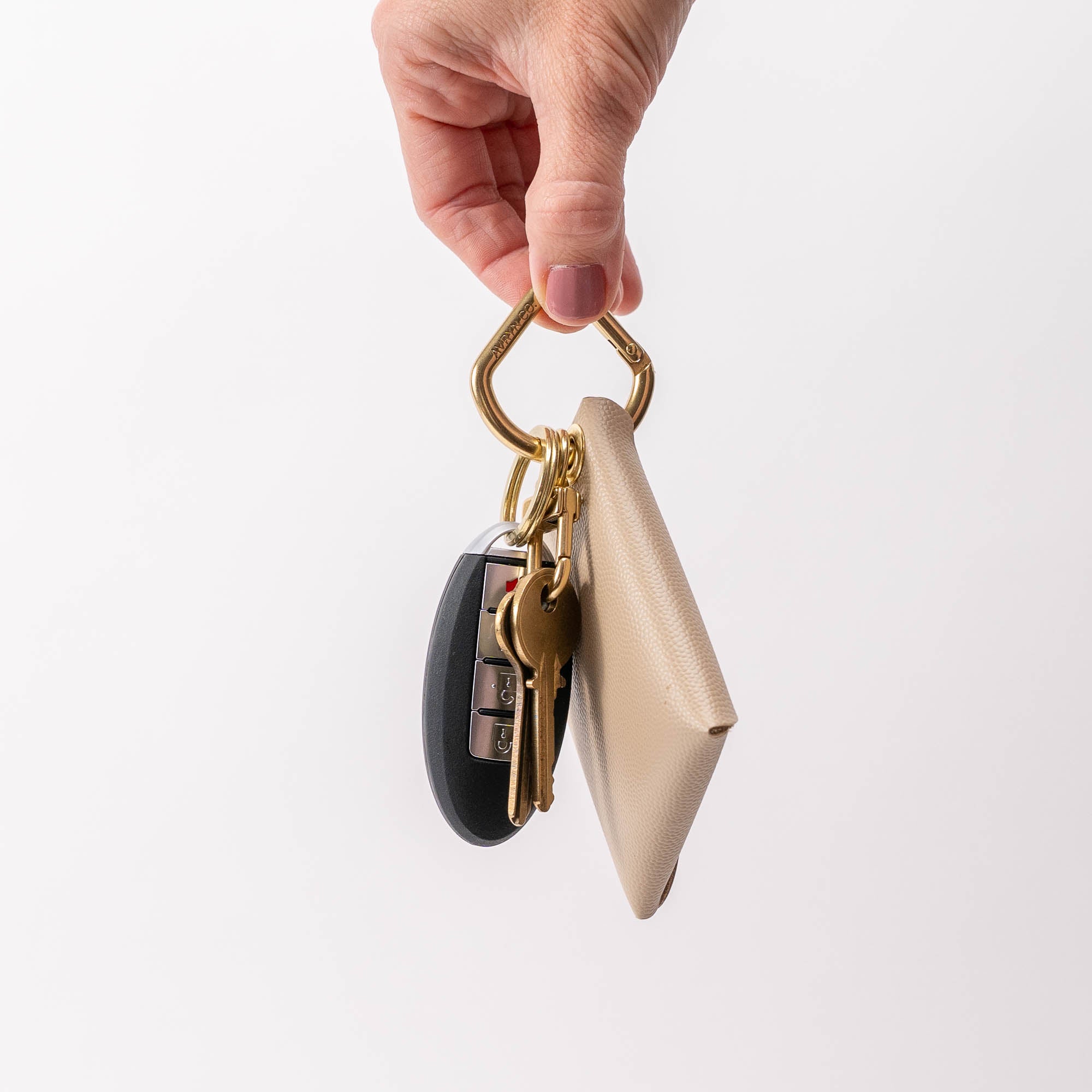 Our card wallet is uniquely designed to pair with our wristlet, or signature locking keyring, both sold separately.