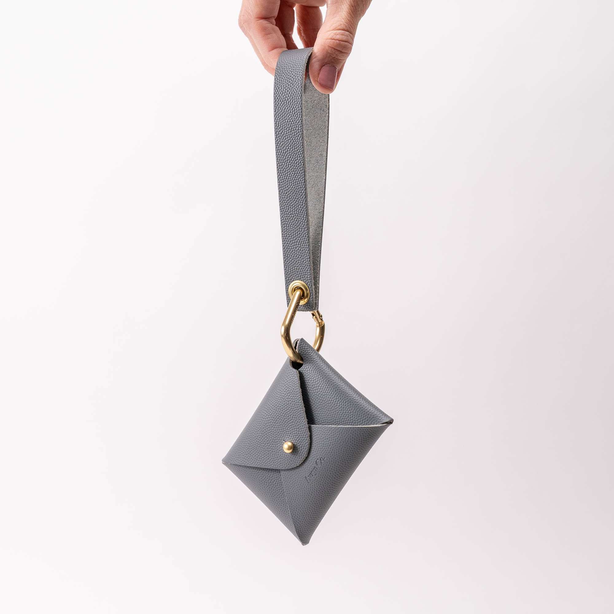 Imported pebbled leather with a waterproof finish. Brass hardware.