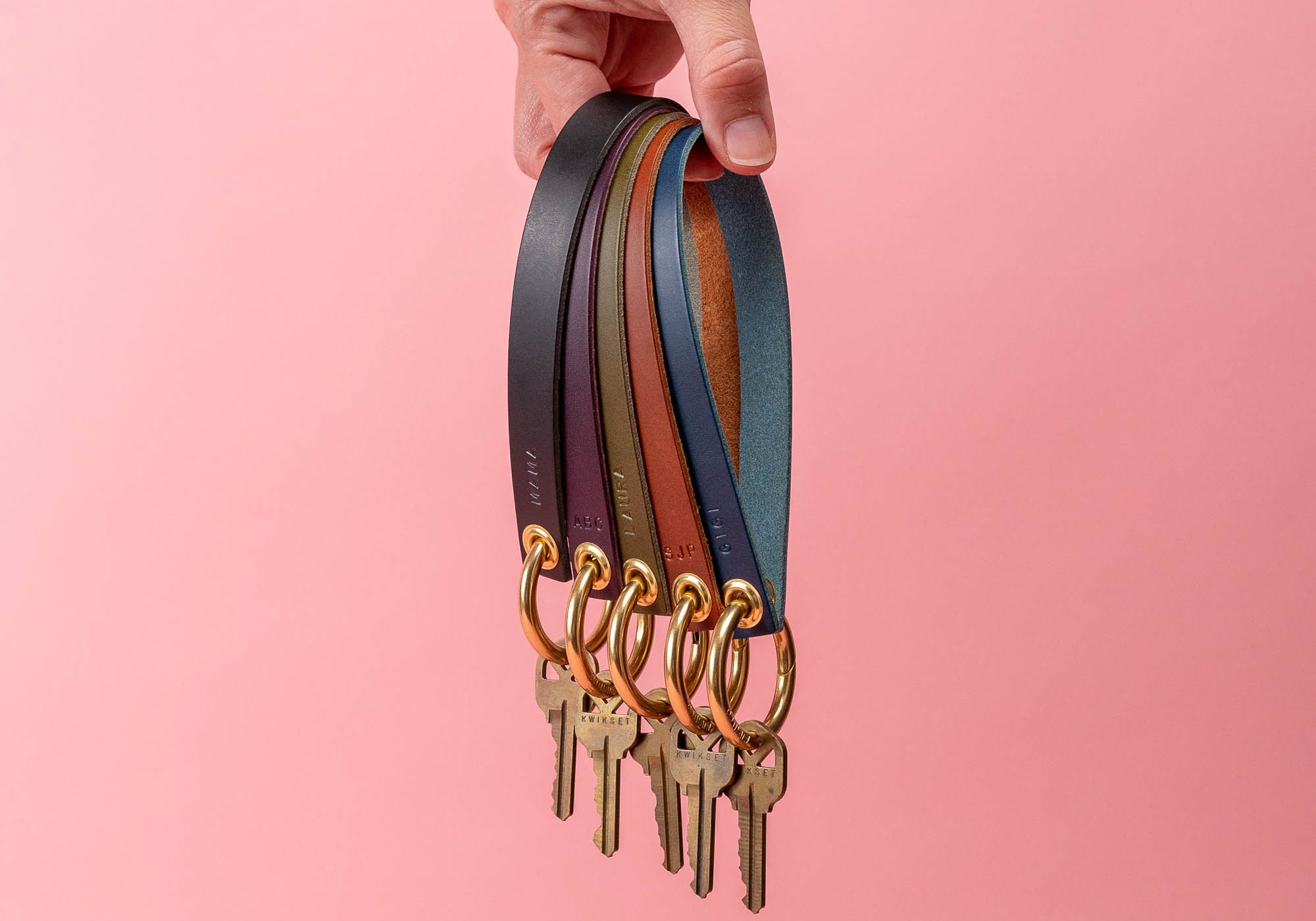 Our Signature Locking Keyring is simple and secure—pull down to swing open, add or remove your keys and fobs, then click it closed to keep everything locked in place.